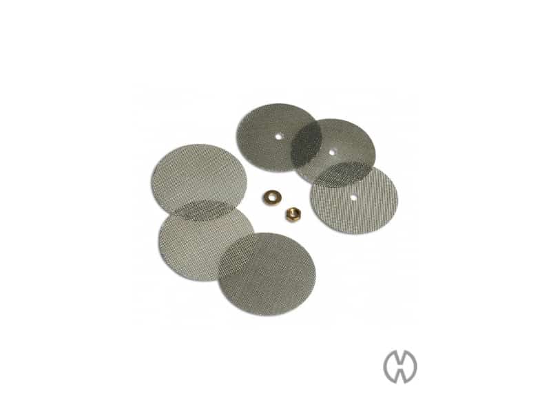 Solid Valve Fine Screen set contiene il filtro superiore e inferiore d’acciaio inossidabile, ciascuno 3 pz. a maglia fine per l’utilizzo in applicazioni, per le quali non è sufficiente la normale larghezza di maglia, per es. erbe aromatiche macinate molto fine. Il set contiene anche un dado ed una rondella. Adatto per Volcano Classic e Digit.